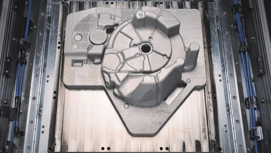 该增材制造零件为压铸工具,打印时以最终零件的负模形式制造,用于塑形液态金属。本案例中,该工具用于生产丰田Yaris混合动力变速箱壳体。该壳体集成发动机、电机及动力分配装置,是整车动力系统中的关键结构件。